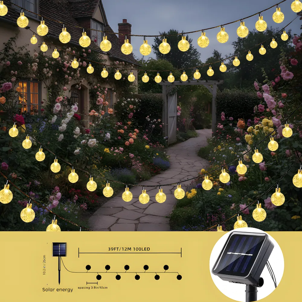 Transform your garden into a sparkling wonderland with our stunning crystal bubble solar powered fairy lights outdoor