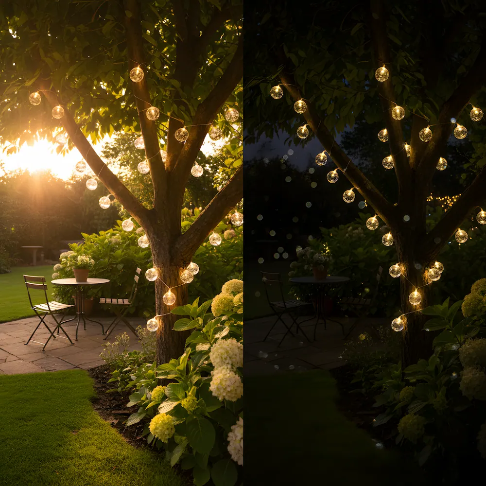 Create unforgettable ambience for outdoor celebrations. These solar powered fairy lights outdoor are perfect for wedding receptions, garden parties, anniversary celebrations, and outdoor ceremonies. The crystal bubbles photograph beautifully, adding magical sparkle to every picture.
